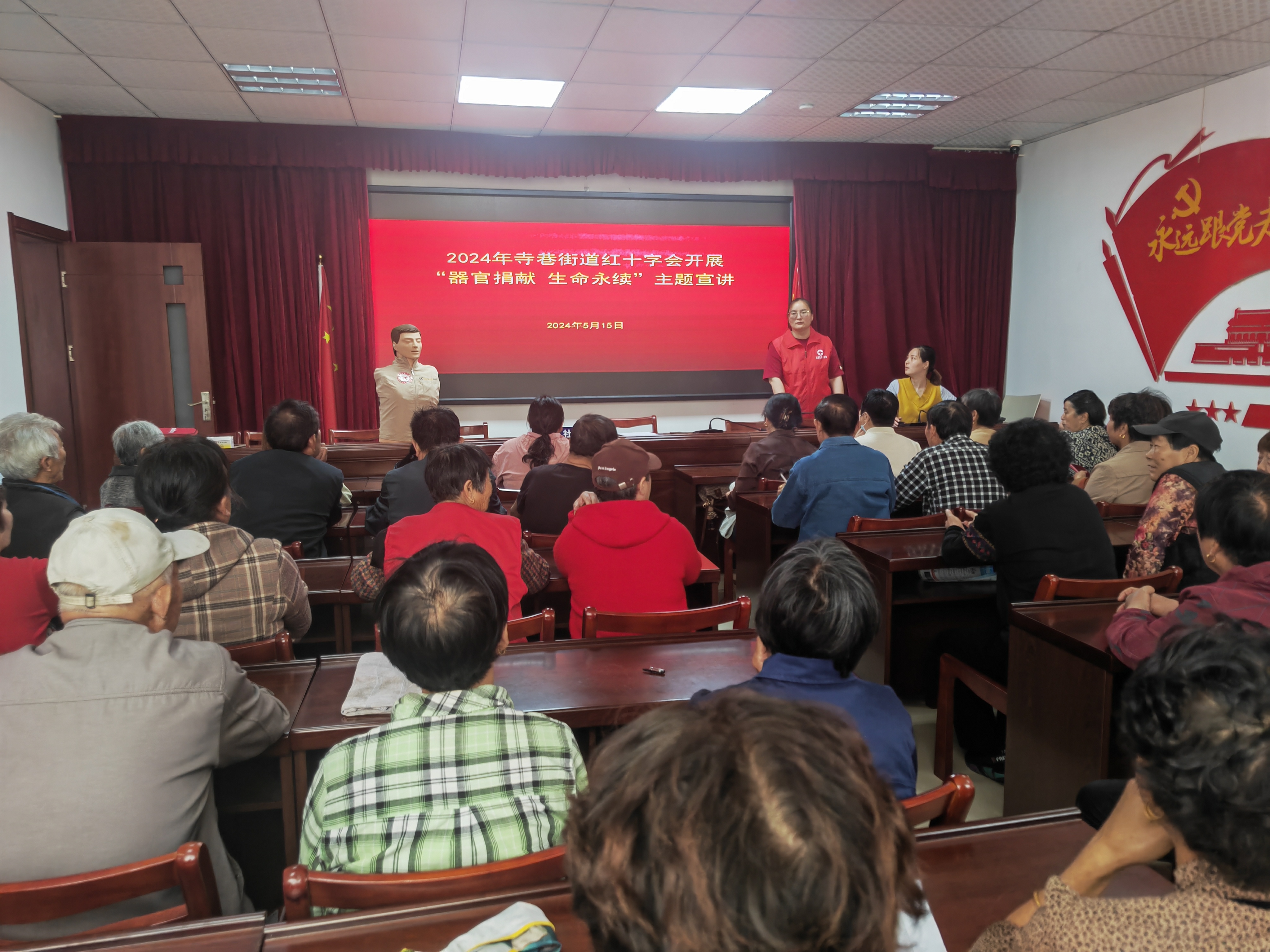 为进一步弘扬“人道、博爱、奉献”的红十字精神,传播捐献理念、普及捐献知识、做好捐献服务,引导社会公众正确认识生命的意义,动员更多社会公众支持和参与人体器官捐献事业,5月15日上午寺巷街道红十字会在大王社区开展“器官捐献 生命永续”主题宣讲活动。 活动中,红十字会志愿者通过播放PPT、宣传片,宣讲捐献者故事等方式,普及人体器官捐献的相关知识、捐献环节和流程等内容。向辖区居民普及器官捐献的相关知识,增强辖区居民对于人道事业的关注和支持,消除居民对遗体捐献的误解和偏见,让人体器官捐献成为生命的延续。 通过宣传活动倡导全社会共同行动起来,人人关心、关注、支持、参与人体器官捐献事业,以实际行动彰显人性之美、散发生命之光,用平凡之举成就生命的非凡奇迹,用大爱奏响“生命乐章。