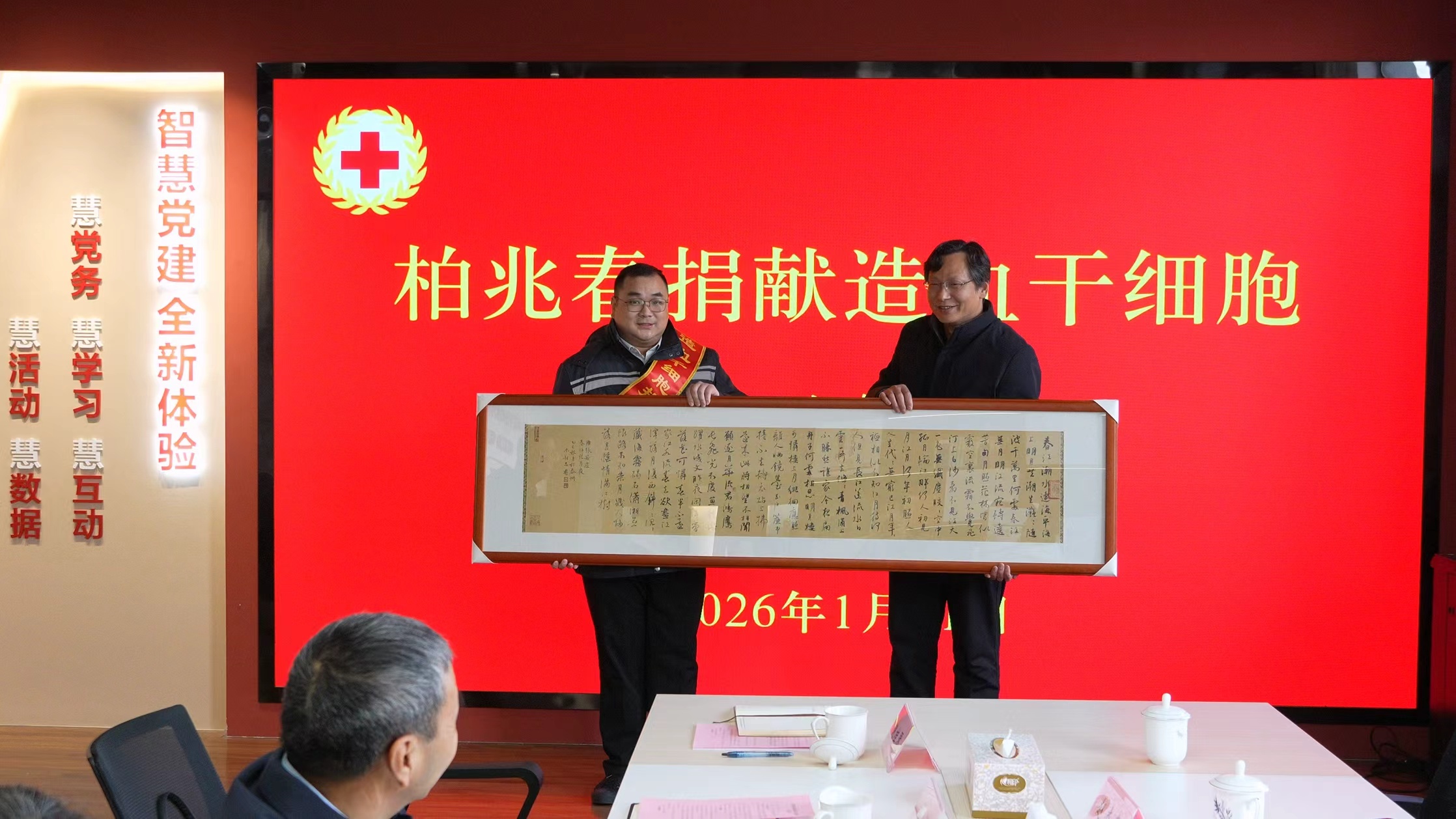 2026年1月21日下午,高港区红十字会在泰州大桥有限公司为志愿者柏兆春同志举行隆重的造血干细胞捐献欢送仪式。泰州大桥公司党委副书记、工会主席周建华、区红十字会常务副会长朱新忠等出席活动,共同向柏兆春同志表达崇高敬意与衷心感谢。 仪式上,柏兆春深情分享了自己加入中华骨髓库、最终配型成功的初心与感悟。朱新忠会长对其无私奉献的大爱精神给予高度赞扬,并代表红十字会向柏兆春及泰州大桥公司捐献两幅书法作品。柏兆春同志此次捐献,标志着高港区2026年造血干细胞捐献工作的爱心序幕正式拉开,成为新年“第一例”,以实际行动为亟待救治的患者点亮了生命之光,充分展现了新时代新高港人热心公益、勇于担当的社会责任感。他的义举也将激励更多人加入志愿捐献者行列,用热血传递希望,接力生命奇迹。 人物词典 柏兆春同志,1994年2月出生,共青团员,2017年进入泰州大桥有限公司,目前工作于泰州大桥调度指挥中心,从事调度工作。作为一名新时代的青年,他积极响应党团号召,努力让志愿服务成为他日常生活的一部分。曾荣获扬州市2018年无偿献血先进个人、2019全国无偿献血奉献奖、2020年泰州大桥优秀团员、2020年江苏省优秀青年志愿者等荣誉称号。